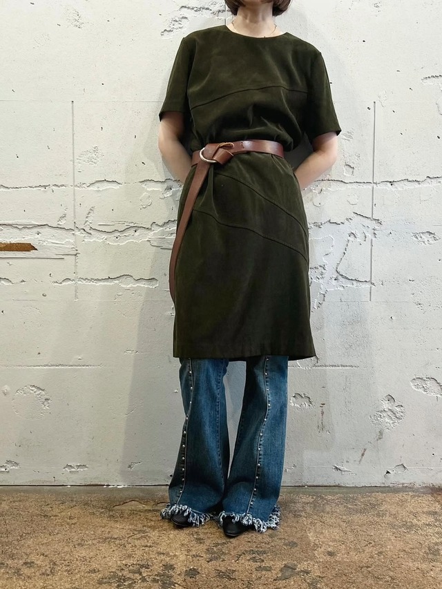 90s fake suede half sleeve onepiece