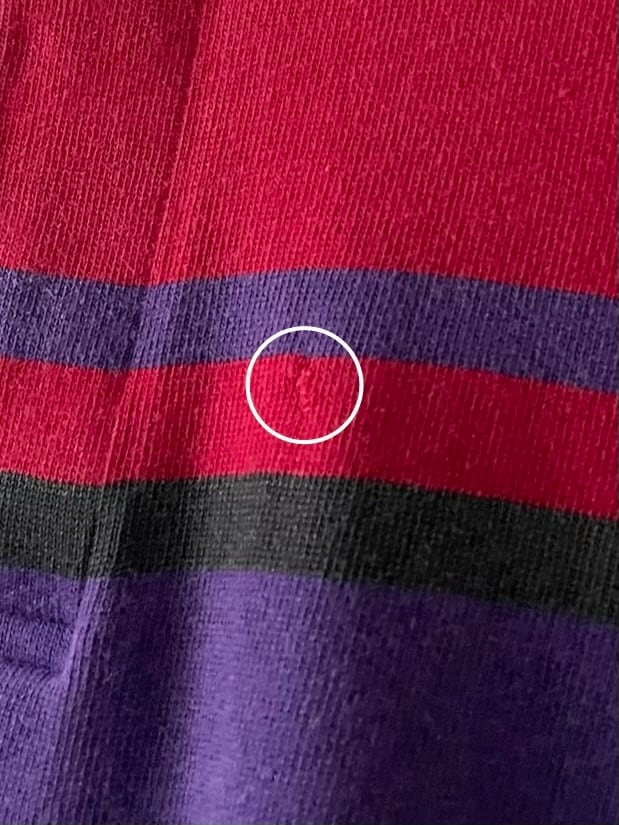 販売前に全体をチェックし、色落ちやダメージ等、出来る限りは記載致しますが、極小さなダメージやほつれ等は古着の風合いと捉え記載を省く場合があります。