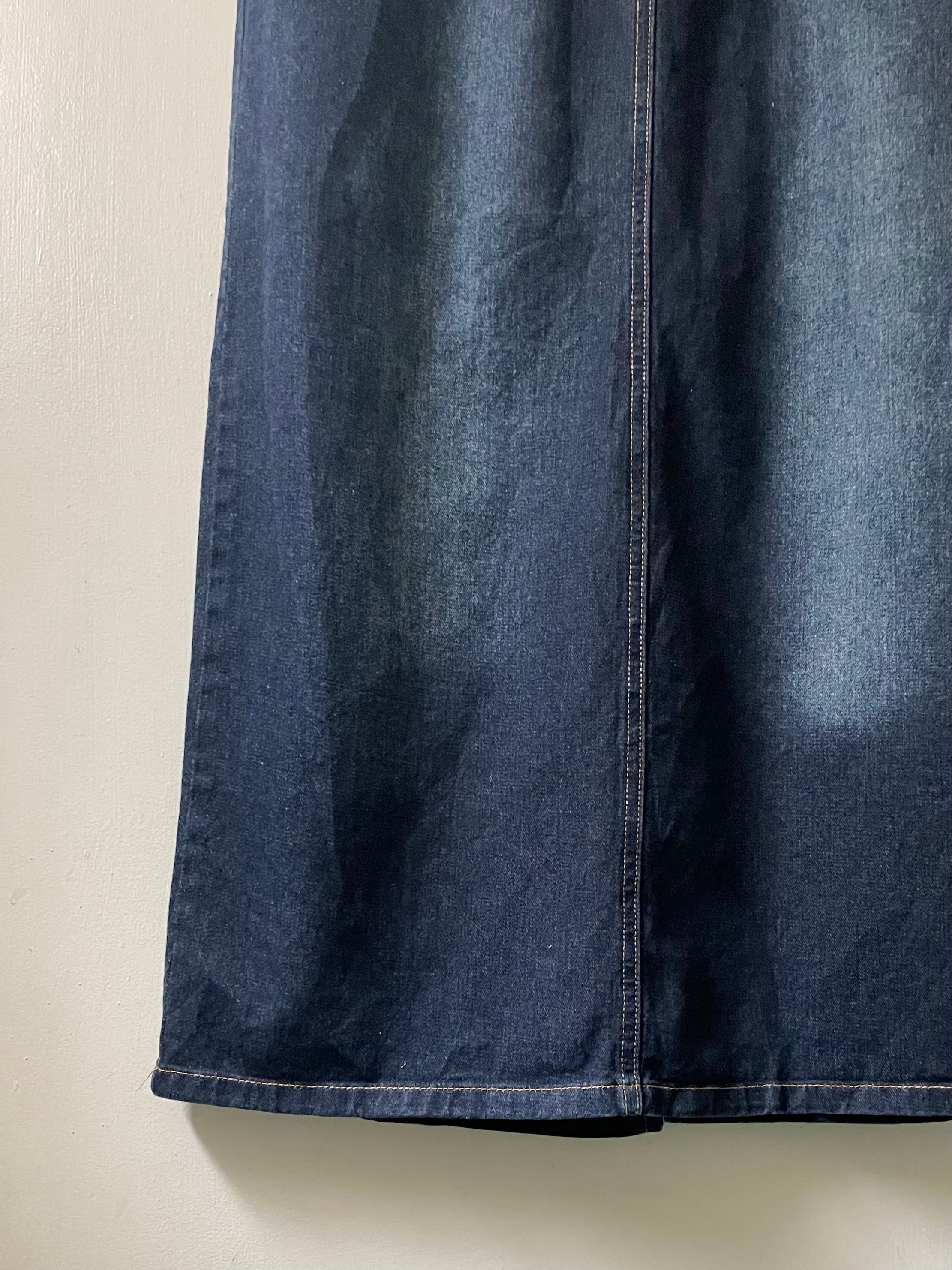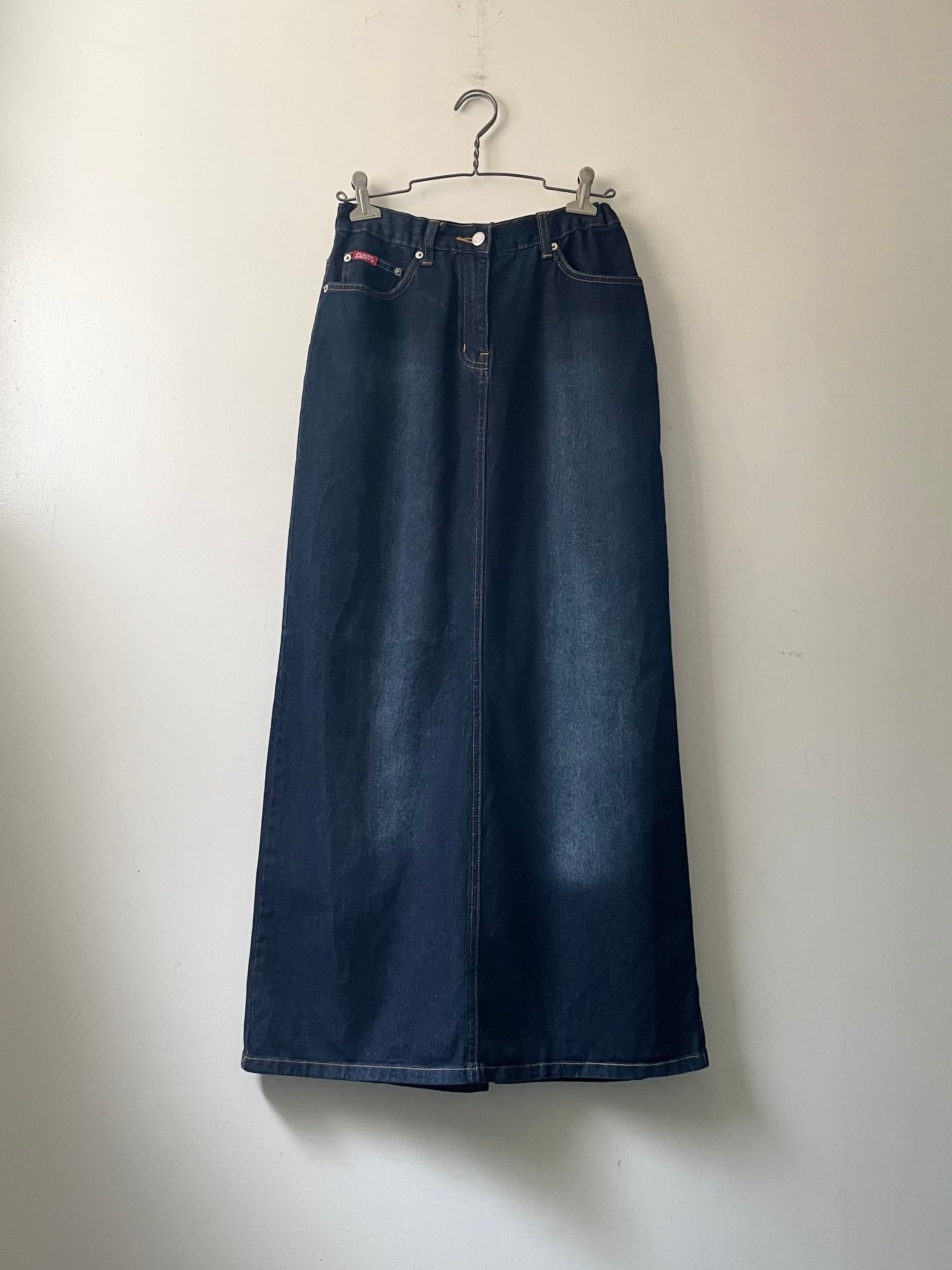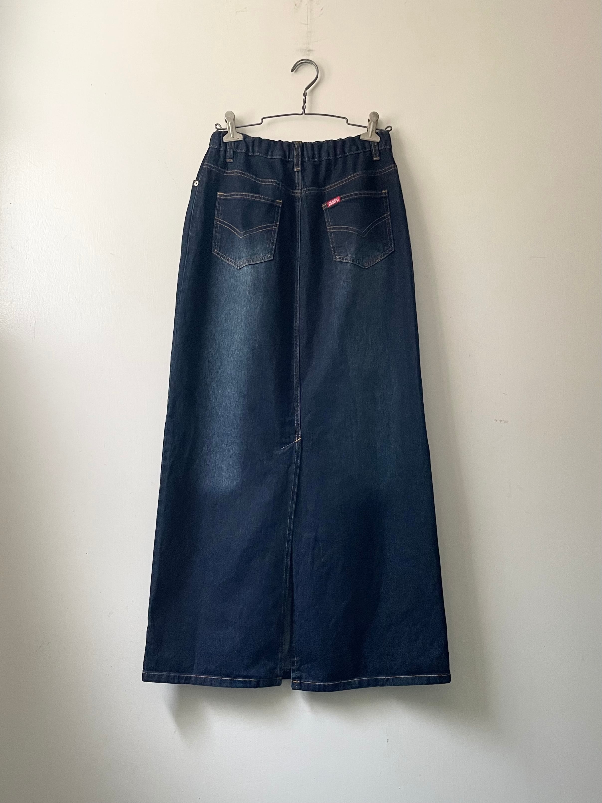 back slit maxi denim skirt