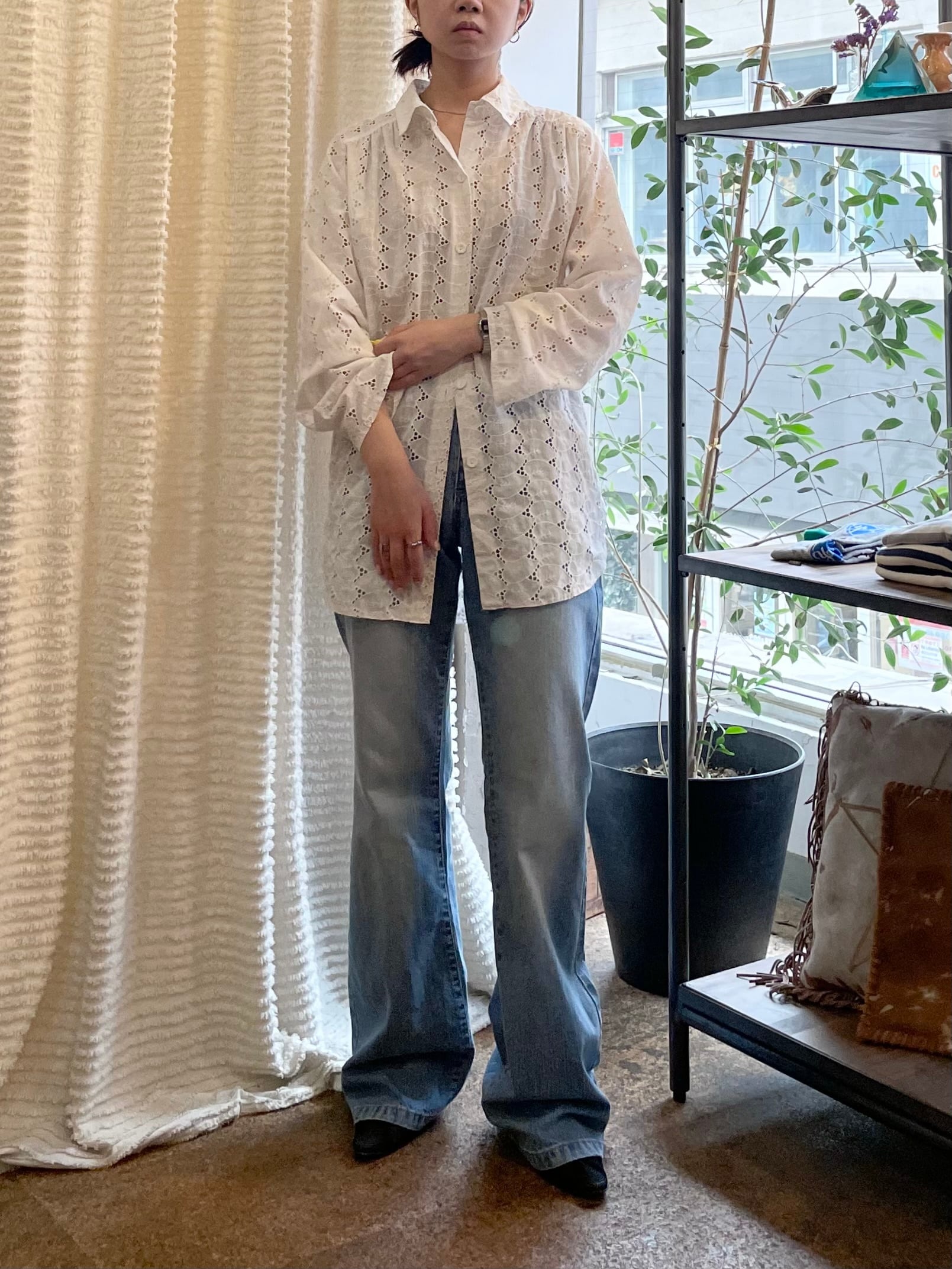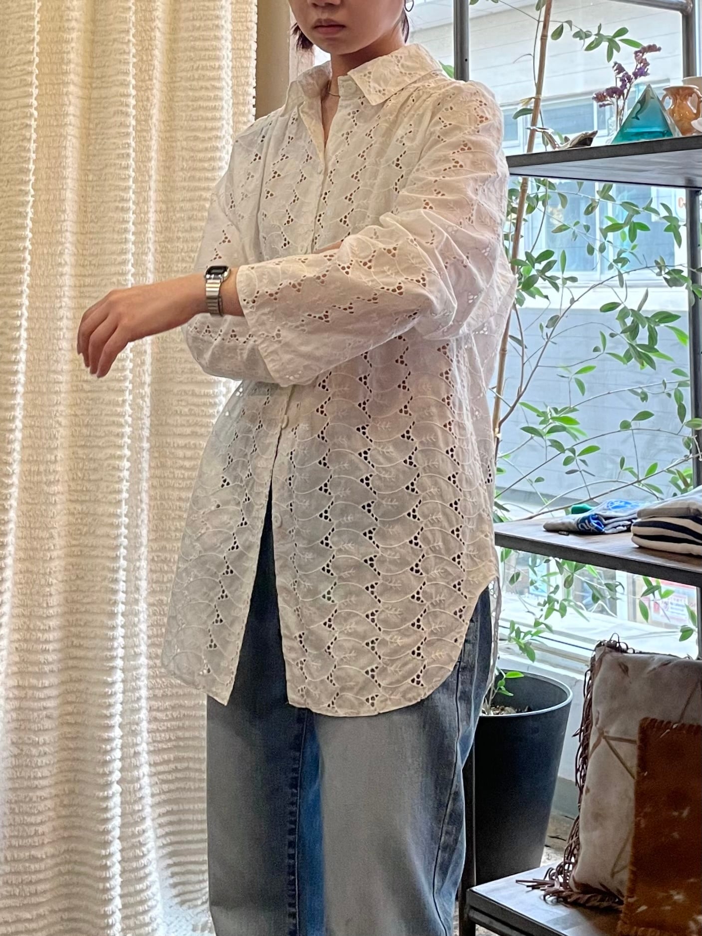 Euro vtg cutwork lace shirt